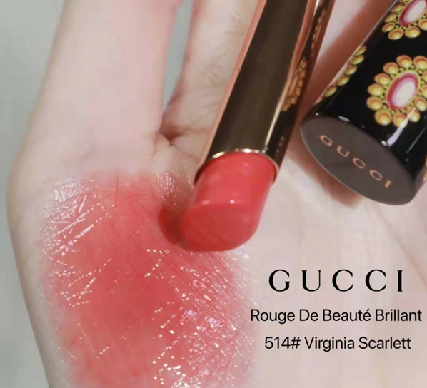 她的名字是rouge de beauté brillant,应该是水润光泽质地的唇膏,共15款颜色。主打24小时长效保湿的口红,成分是花油/果油/透明质酸。 514:很清透的西柚粉!很适合素颜;