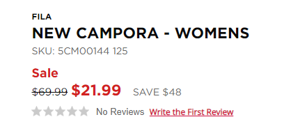 Shopwss网站这款Fila斐乐 New Campora女士经典小白鞋,售价$21.99,转运到手约243元。目前6码起有货。