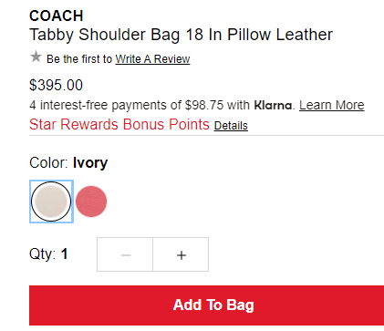 | 标题: | Coach蔻驰2021春夏新款Tabby枕头包 小号上新价$395 |