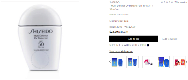 | 内容: | 目前Jomashop官网的这款Shiseido资生堂 美版白胖子防晒乳SPF50 30ml,售价降至66折$22.99,订单满$100美国境内免邮,适合凑单带回。另外还叠加网站满减,具体如下: -无门槛5美金优惠券,折扣码“55HTFS5”; -美国包邮折扣码“FREESHIP”; -满$150立减$10,折扣码“55HTFS10”; 新艳阳夏白胖子多元无油清爽防晒乳(也是我们经常说的白胖子)。新艳阳系列是安耐晒的升级版,比安耐晒更清爽,一整天下来脸部都不油腻。SPF 42+是美版,SPF50+是国际版,这个是根据国家SPF的标准设置的,防晒效果是一样的。