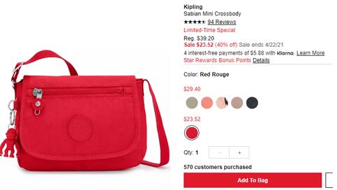 | 标题: | Kipling Sabian Mini 斜挎包 红色折后$23.52 |