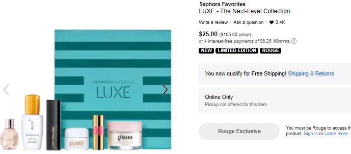 | 内容: | VIBR会员提前享! ------ 网站需在境外网络环境下打开! Sephora丝芙兰上架这款LUXE - The Next-Level美妆盒子,价值$105,售价仅$25; 按网站提示:4月23日凌晨3点全员开放;