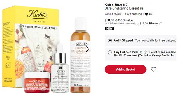 | 内容: | 网站需在境外网络环境下打开! Sephora美国网站的这款KIEHL'S科颜氏Ultra-Brightening 套装新上架,价值$100,现售价$68;