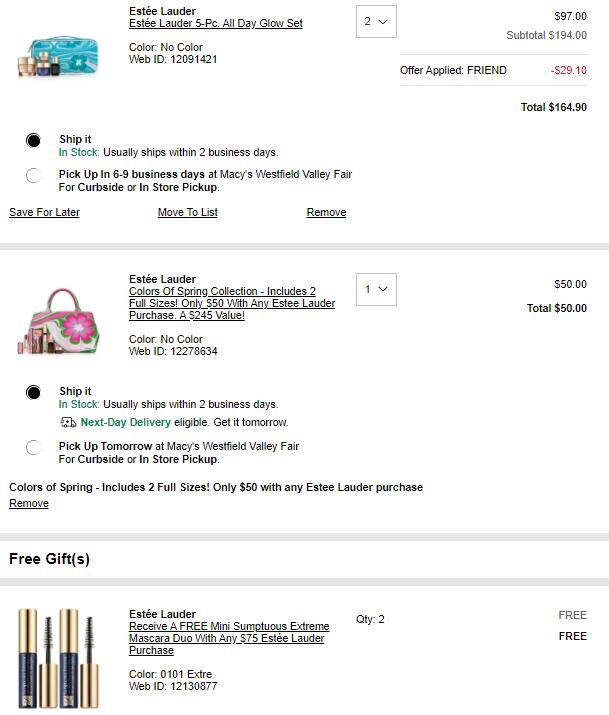 | 内容: | 网站需在境外网络环境下打开! Macy's梅西百货的这款Estee Lauder 雅诗兰黛 新款智妍套装补货,售价$97(价值$188),用码FRIEND可享额外85折,折后$82.45;美国境内满$25免邮; -另外雅诗兰黛订单满$75送彩妆4件套; -购买雅诗兰黛订单满$100送智妍小样2件套【暂时缺货】; -购任意雅诗兰黛产品可$50换购价值$245母亲节礼包(含2件正装,礼包不叠加85折),购物车加车自选即可; 此套装内含智妍面霜50ml+小棕瓶旅行装15ml+智妍眼霜小样+智妍晚霜小样,雅诗兰黛是美国一线护肤彩妆品牌,以抗衰修护护肤品享誉世界。雅诗兰黛的产品风格是精于研发和精致优雅,它的主题产品有护肤品 、彩妆和香氛产品。明星智妍系列也是高居护肤品榜首位置。
