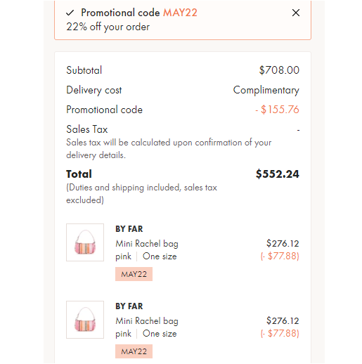 | 内容: | 24S现有精选正价商品满600$/??享78折促销,需用码“MAY22”; 这款by FAR Mini Rachel 彩虹腋下包,售价$354,加车2件,用码折后$276.12/件,约1776元; BY FAR 的腋下包火遍全网,可以说是被欧美超模 Kendall、Bella 和Gigi 肯德基姐妹团一路带火,出街、活动甚至于在维密后台都能看到这款包包的身影,真可谓是爱不释手,当然这款包包体积小巧轻便却十分能装哦。