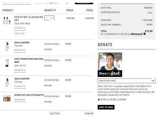 | 内容: | Gilt city现可免费领取Bobbi Brown官网满减券,领券链接,具体活动如下: 1、满$80减$30券,订单用券满减折前满80美金送眼部+腮红彩妆套装(价值$64) + 满$100再送正装眼影盘(色号Warm Cranberry), 总价值$163; 2、满$300减$125券,订单用券满减后送护肤套装(含2个正装75号精油)+ 送正装眼影盘(色号Warm Cranberry), 总价值$215。 这款Bobbi Brown芭比布朗卸妆油200ml*2+旅行装,售价$100,加入购物车3件,用码折后单件$58.33,仅少量存货,快撸!美国境内免邮。