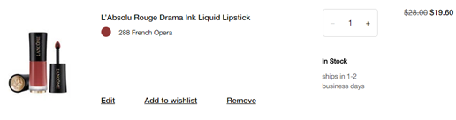 这款LANC?ME兰蔻菁柔雾水唇釉有货,售价$28,用码折后$19.6;