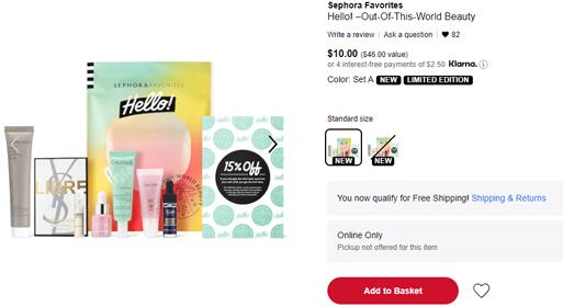 | 内容: | 网站需在境外网络环境下打开! Sephora丝芙兰这款Sephora Favorites Hello! ?Out-Of-This-World美妆盒子(价值$46)新上架,目前售价$10;