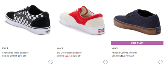 Nordstrom Rack现有Vans男士精选鞋款低至4折促销,页面直接显示促销价,无需用码;