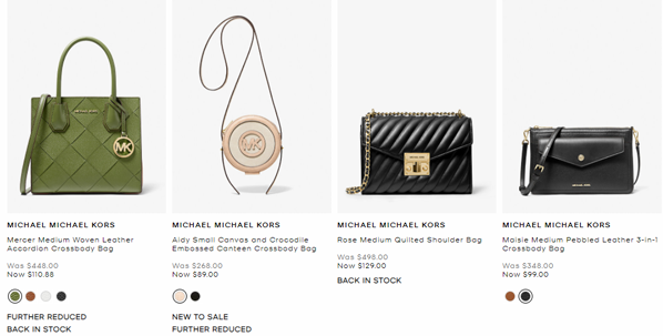 | 内容: | 网站需在境外网络环境下打开! MICHAEL KORS官网折扣区低至2折促销,页面直接显示促销价; 部分产品不参加折扣,以加入购物车为准; 活动截止北京时间6月1日下午; 美国境内免运费,需登录KORSVIP会员才能享受折扣(点击注册); 网站支持国卡+转运。不过有一定的砍单几率。