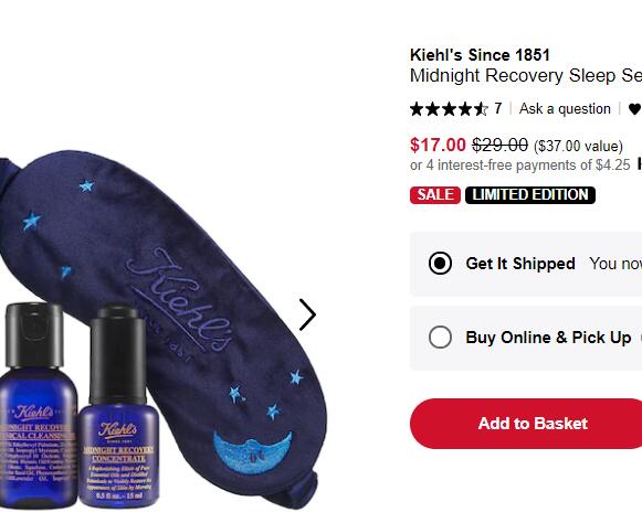 | 内容: | 网站需在境外网络环境下打开! Sephora美国站这款KIEHL'S 午夜精灵3件套(价值$37),售价降至59折$17,需要可入;