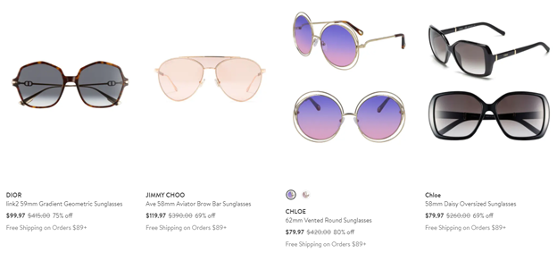 Nordstrom Rack大牌墨镜专场低至2折促销,页面直接显示促销价,无需用码;