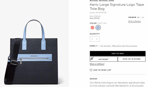 | 内容: | 网站需在境外网络环境下打开! Michael Kors美国官网这款MICHAEL Michael Kors kenly竖版托特笑脸包,售价降至24折$99,美国境内免邮,预计发货重量3磅,转运到手约765元。 这款算是为数不多的MK家最近卖的很火的款,一只竖版的手提包,非常精致非常有质感。方方正正的包款,其实还是比较少的,喜欢这种方正的酷酷的款的包包的小伙伴,别错过了!