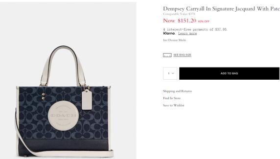 | 内容: | 网站需在境外网络环境下打开! Coach工厂店官网这款Coach 新款Dempsey 横版托特包补货,售价4折$151.2,美国境内免邮,转运到手约1140元。 Dempsey香布雷牛仔系列托特包,爆款牛仔LOGO,通勤必备。尺寸约29x22x13cm。非常大气的提款托特,不光能手拎,还配有长肩带,可斜挎。和LV的onthego特别像,出差旅游背着都好,上班族装电脑没问题。