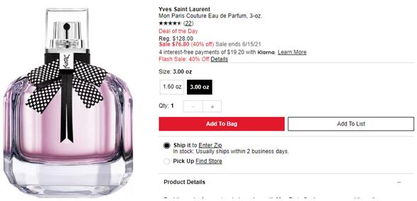 | 内容: | 网站需在境外网络环境下打开! 目前Macys梅西的这款YSL圣罗兰反转巴黎银色波点浓香90ml,6折$76.8(约495元); 反转巴黎女士香水灵感源于圣罗兰先生高定成衣设计。瓶口入成衣般穿戴丝质蝴蝶领结,搭配如珠宝装饰般的金属YSL饰扣;瓶身如同女性香肩,具备完美线条,雕刻艺术一般,呈现精致的多边形轮廓。让你感受疯狂,炙热的爱。