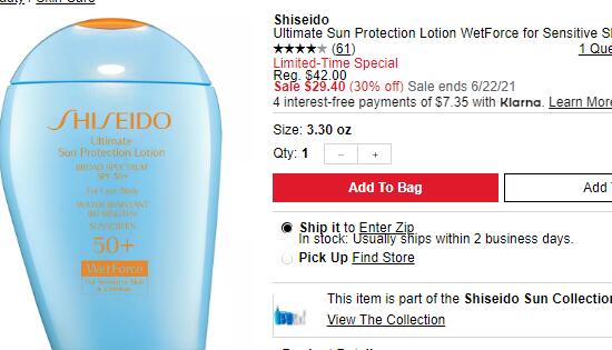 | 内容: | 网站需在境外网络环境下打开! Macys梅西这款Shiseido资生堂 浅蓝胖子敏感肌儿童专用 SPF 50+ 100ml,售价降至7折$29.4,订单满$25美国免邮; 浅蓝胖子,质感在白胖子和蓝胖子之间偏白胖子,比较清爽,不油腻成膜快,颜色是白中带蓝的,物理防晒上脸会泛白,基本要10分钟以上才会自然,适合敏感肌;
