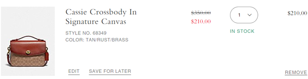 coach美国官网这款COACH蔻驰Cassie Signature邮差包,售价降至6折$210;美国境内免邮;