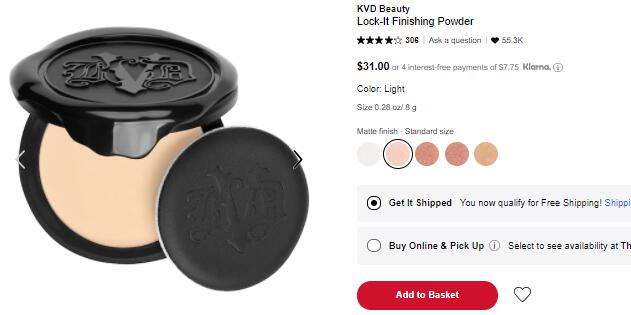 | 内容: | sephora这款Kat Von D Lock-It 定妆粉饼Light色补货,售价$31;