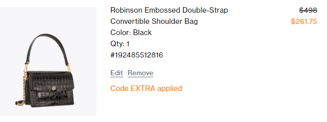| 内容: | 站需在境外网络环境下打开! Tory Burch美国官网已经开启将年中大促,精选包包、美鞋低至5折促销,价格直接页面显示; 目前活动升级,叠加额外75折优惠,需用码:EXTRA;折上折力度更好!!! 相比以往打折叠加折扣码来说,直接减价活动参加款更多,平时不搞活动的款也参加; 美国境内免运费,促销截止时间未知; 目前看,Nordstrom | Bloomingdales有同步促销,可以关注;