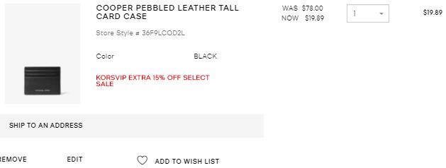 | 内容: | 网站需在境外网络环境下打开! Michael Kors美国官网这款Michael Kors 真皮卡包再降价,图片色售价降至3折$23.4,还叠加会员85折优惠,需用码:EXTRA15,折后价$19.89,好价!美国包邮,需要可关注! 此款百分百荔枝皮纹真皮制作, 柔软且耐用! 多个卡槽设计超能装!纤薄外形非常方便携带出行, 男女通用。