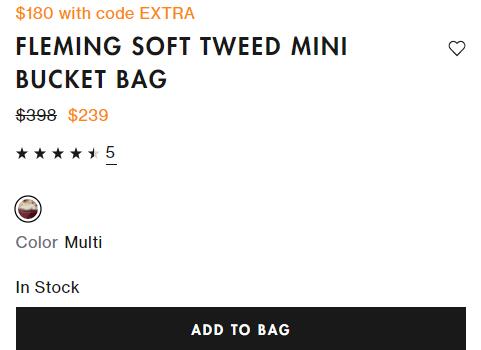 Tory Burch美国的这款Tory Burch FLEMING SOFT粗花呢福袋水桶包,售价直接降至$239,还可用码“EXTRA”叠加额外75折,折后$180,好价可入,美国境内免运费。