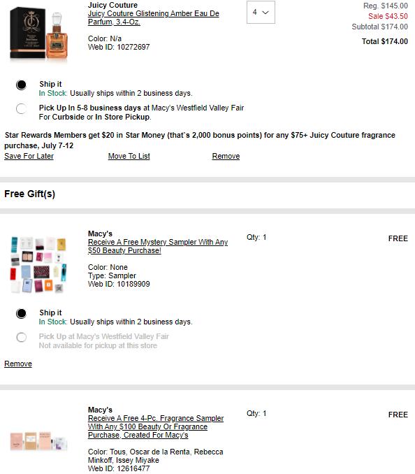 | 内容: | 网站需在境外网络环境下打开! 目前Macys梅西的这款Juicy Couture Glistening Amber耀眼琥珀香水100ml,售价降至3折$43.5(约279元); -另外任意美妆订单满$50送神秘好礼; -另外任意美妆订单满$100送4件香水小样礼包,满额自动加车; 美国境内满$25免邮; Juicy Couture的Glistening Amber是一款东方型花香调的女用香水。Glistening Amber是在2018年推出的。前 调- 赤素馨花和覆盆子; 中调 - ?尾草,香草和焚香; 尾调 - 琥珀,?司米木麝香和麝香