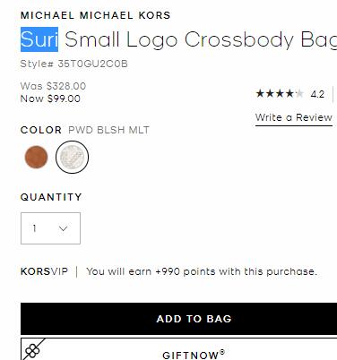 | 内容: | 网站需在境外网络环境下打开! Michael Kors美国官网的这款Michael Kors Suri小号皮革老花水桶包有货,3折$99,美国境内免邮,预计发货重量3磅,转运到手约760元; 夏天度假一定要有一个亮色系的小水桶,又能装,又可以拍出美美的照片,MK 的这款以现代水桶袋造型为基础,采用经典标志 logo 印花图案,肩包结构柔和,边缘分明这款水桶包的配色鲜活活泼,背在身上真的是眼前一亮,提升气质。