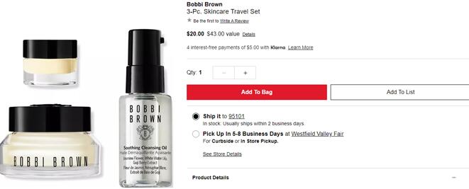 | 标题: | Bobbi brown护肤3小件套装售价$20,价值$43 |