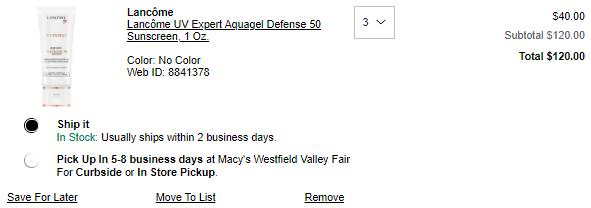 | 内容: | 网站需在境外网络环境下打开! Macy's梅西百货这款LANC?ME 兰蔻防晒霜 spf50 30ml,售价$40;美国境内满$25免邮; 还叠加多重满赠如下: -满$42.5送护肤6件套; -满$80再送护肤3件套,含粉水、小黑瓶等; -美妆订单满$50送小样礼包; 另外美国官网目前有此款6折促销,需用码“JULY”,链接直达>>>大家根据需要选择; 这个美版的应该跟国内蓝白色包装的是同款。质地轻薄,不能说是aqua gel但是比乳液状的要更轻薄,擦上脸是光泽皮肤的感觉,不用盖粉底也不会觉得太油。香味很淡,是淡淡的花香;