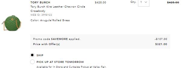 | 内容: | Bloomingdales现有精选时尚类满$100享85折、满$200享8折、满$400享75折促销,需用码:SAVEMORE; 其中这款Tory Burch KIRA CHEVRON 小圆饼 3色可选,售价$428,无需凑单,加车一件用码享75折,折后$321; Loyallist免运费(可免费加入Loyallist program), 结账时输入Loyalist ID即可。 结算输入免税州邮编后消费税自动消失。 说起小圆饼,脑海中浮现的就是gucci 的黑色/红色圆饼包,可以说是火爆友圈!圆饼包真的超流行!一眼看到就爱上的那种。超级好搭配,感觉配什么都可!上身效果非常好~看起来小小一个包但是超能装的,钱包钥匙口红纸巾粉饼手机清凉糖这些还有2分之一的空余;由柔软的人字形衔缝皮革制成,手感非常舒适。