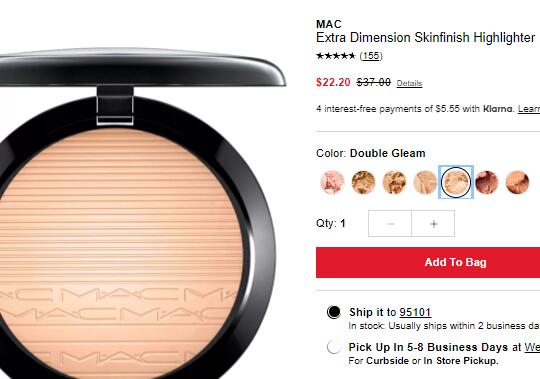 | 内容: | 网站需在境外网络环境下打开! 梅西百货这款这款mac热门的高光 double gleam\比较火的仙桃高光/SHOW GOLD,售价降至6折$22.2; 满$25免美国运费; MAC家的高光产品还真不少,MAC的高光double gleam,有人甚至说它和绝版的阿玛尼生姜敲像。粉质很细,偏光美出天际!膏体香槟色,上脸是偏白的blingbling感。有人会觉得太闪,是那种有存在感但是不夸张的细闪。打在鼻梁上内心立马来戏!而且不显毛孔,妆感自然美妙。