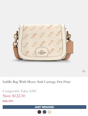 | 内容: | 网站需在境外网络环境下打开! Coach工厂店的这款Coach蔻驰 Saddle 马车印花马鞍包,售价降至35折$122.5,三色可选,美国境内免运费; Coach蔻驰新款来袭,又是要掏空钱包的赶脚Coach蔻驰女士翻盖斜挎包马鞍包 Saddle,经典马车logo,绝美配色!