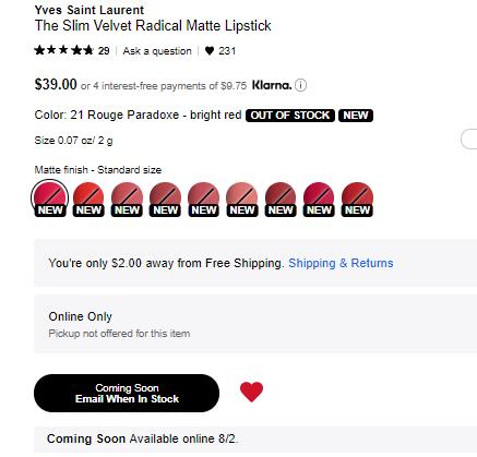 | 内容: | 网站需在境外网络环境下打开! Sephora美国官网的这款YSL 圣罗兰新款小黑条口红,售价$39;将于北京时间8/2号上架;