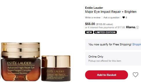 | 内容: | 网站需在境外网络环境下打开! sephora上新这款Estee Lauder 雅诗兰黛 抗蓝光眼霜3件套(价值$105),售价仅$68;