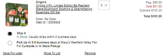 | 内容: | 网站需在境外网络环境下打开! Macys梅西百货这款Origins悦木之源 菌菇系列套装有货,售价降至6折$51.6。 另外Origins订单满$45送中样; 美国境内满$25免邮,转运带回。 套装内含:面膜30ml+菌菇水100ml+精华50ml;悦木之源的菌菇系列一直是他们家的明星产品,油痘肌必备,清爽补水,镇定消炎。