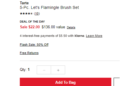 | 标题: | Tarte 限量版火烈鸟化妆刷套装(价值$136)折后$22 |