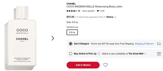 | 内容: | 网站需在境外网络环境下! 目前sephora美国官网的这款Chanel COCO MADEMOISELLE 香奈儿可可小姐柔肤润体乳补货,售价售价$55;