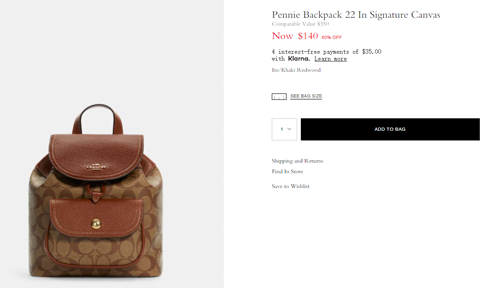 | 标题: | Coach Pennie 22 老花双肩包4折$140 |