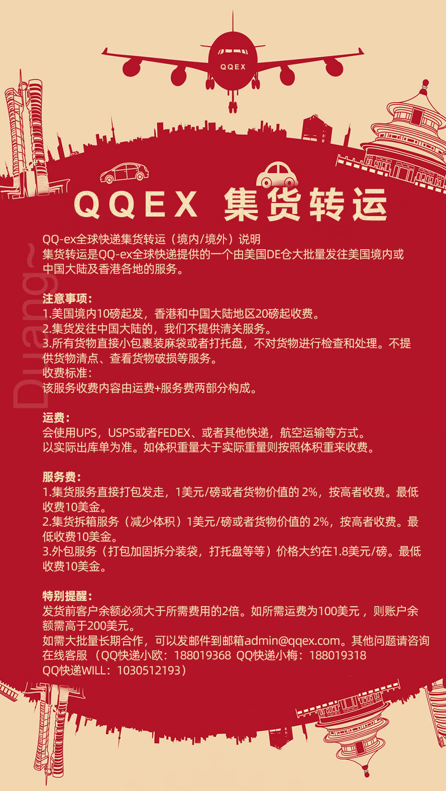 1.以上渠道各类二手物品禁发,超长件/超大件请咨询客服(qq:188019368/188019318 微信号:qqex2011)